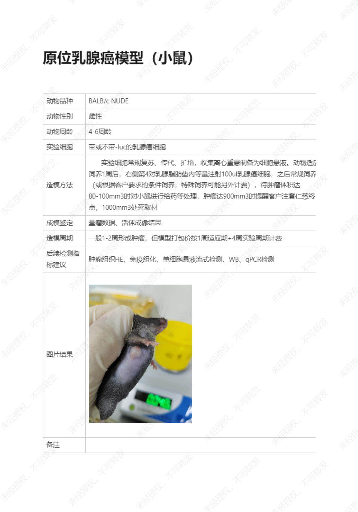 原位乳腺癌CDX模型